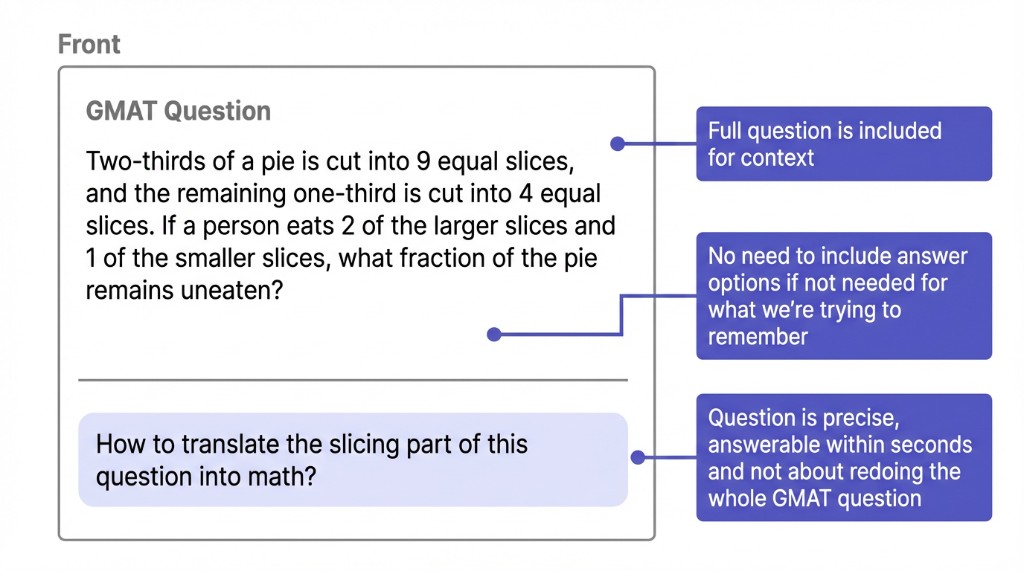 A good revision card has a Front and a Back. Use paper (e.g. A5 or A6) or a digital app like Anki. The goal is to test one specific thing you want to remember, not to redo a whole question.
